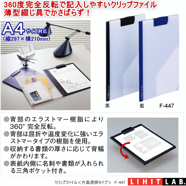 価格: 810円 レビュー評価:0.0 レビュー数:0 薄型綴じ具で、かさばらず360度完全反転で記入しやすいクリップボード。 回覧板やアンケート、社内資料閲覧などにおすすめ。用箋ばさみ 商品名 クリップファイル A4 片面透明タイプ 品番 F-447 黒/藍 サイズ 約)縦335×横240mm 厚さ13mm 材質 表紙:ポリプロピレン(生地厚1.5mm)、背部:エラストマー樹脂、綴じ具:ABS樹脂 仕様 規格:A4タテ型(A4サイズ:297×210mm)、ヨコ開きタイプ 適性収容量:コピー用紙35枚、表紙内側に三角ポケット付き メーカー LIHIT LAB. リヒトラブ ※他のモール及び店頭売りと在庫を併用しておりますのでご注文後でも在庫切れの場合がございますのであらかじめご了承下さい。 【関連商品】 クリップボード A4 合成皮革製 用箋ばさみ 販売価格 2,730円 (税込) A4 クリップボード 捺印対応 カバー付き 販売価格 1 (更新日時:2017/07/31 02:54) Supported by 楽天ウェブサービス |